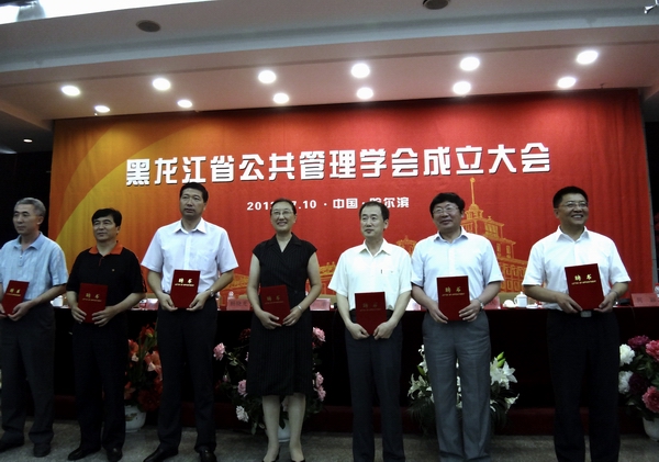 会议由黑龙江大学政府管理学院院长教军章主持。社科联副主席刘幸同志与黑龙江大学副校长何颖副校长共同为黑龙江省公共管理学会揭牌。会议通过了《黑龙江省公共管理学会章程(草案)》,选举产生了首届黑龙江省公共管理学会理事、常务理事、副会长、会长、秘书长、副秘书长。我校党委书记李海红同志当选为副会长,王维、王晓梅、何春歧、苗雨君当选为理事。