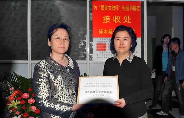 平凡铸师魂,壮举弘大爱。“最美教师”张丽莉的英雄事迹感动中国,感动校园。5月18日上午,齐齐哈尔大学党委副书记王凤琴,校长助理、党办、校办主任尹鸥,党委组织部长齐宏伟受学校党委委托,前往哈医大第一医院,通过佳木斯市慈善总会向“最美教师”张丽莉老师转交齐齐哈尔大学教工党员、干部教师的爱心捐款6万9千余元。
