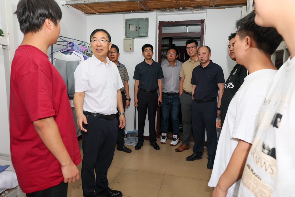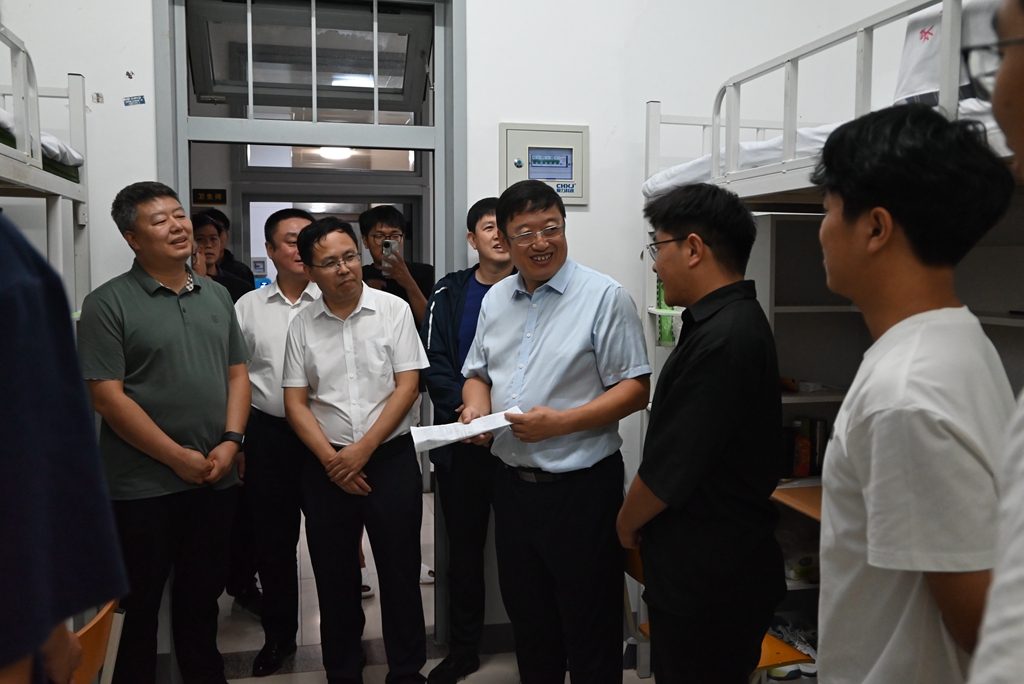 校党委书记丁宏,校长、党委副书记郝文斌强调,要持续优化新生住宿条件,做好后勤服务保障,及时解决新生在生活中遇到的实际问题,为同学们营造安全、舒适、温馨的学习生活环境。