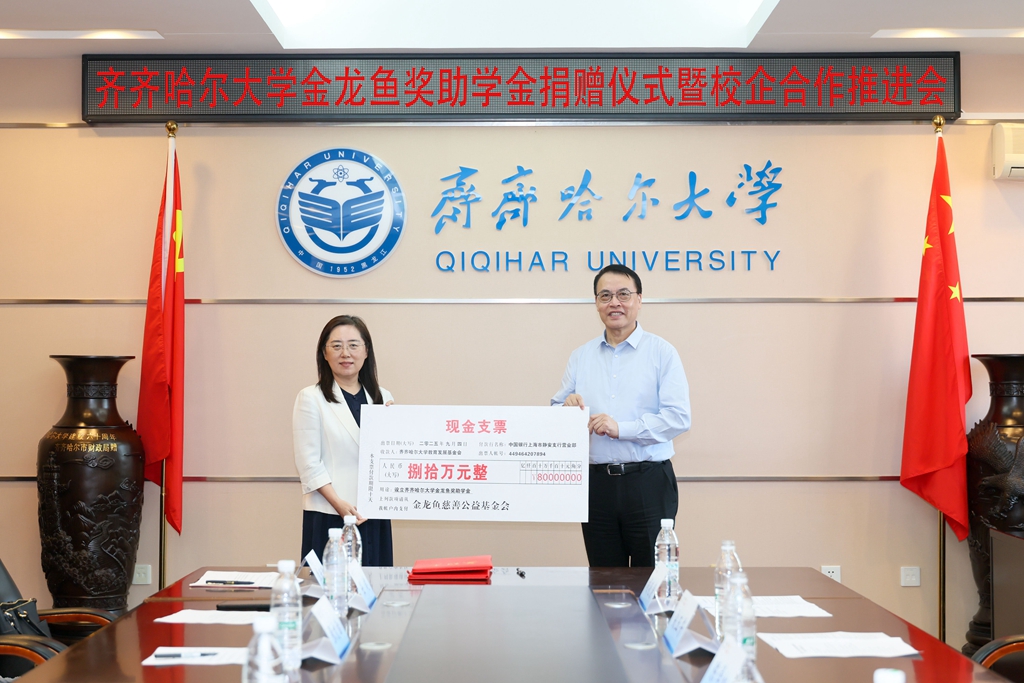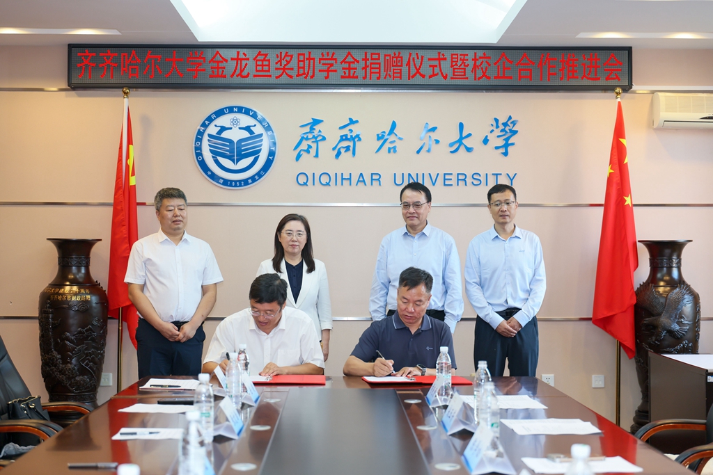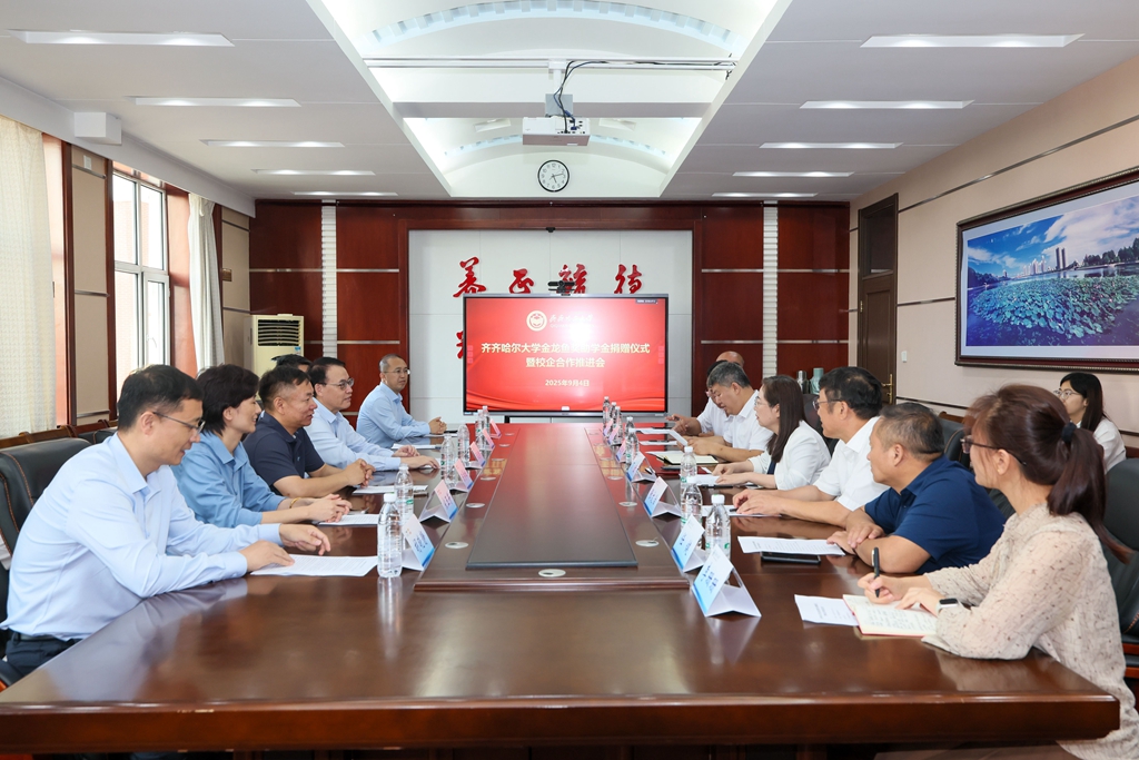 9月4日下午,学校在办公楼504会议室举行“金龙鱼奖助学金”捐赠仪式暨校企合作推进会。益海嘉里集团监事会主席、人事行政部总监张建新,益海嘉里集团谷物科技事业部总监、益海嘉里(富裕)现代农业产业园总经理陈学松等一行6人与学校党委书记丁宏、党委副书记张文治等出席会议,学校相关职能部门和学院负责人参加会议。会议由副校长、党委常委王志刚主持。