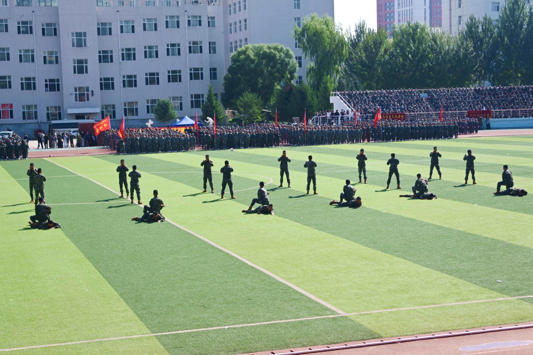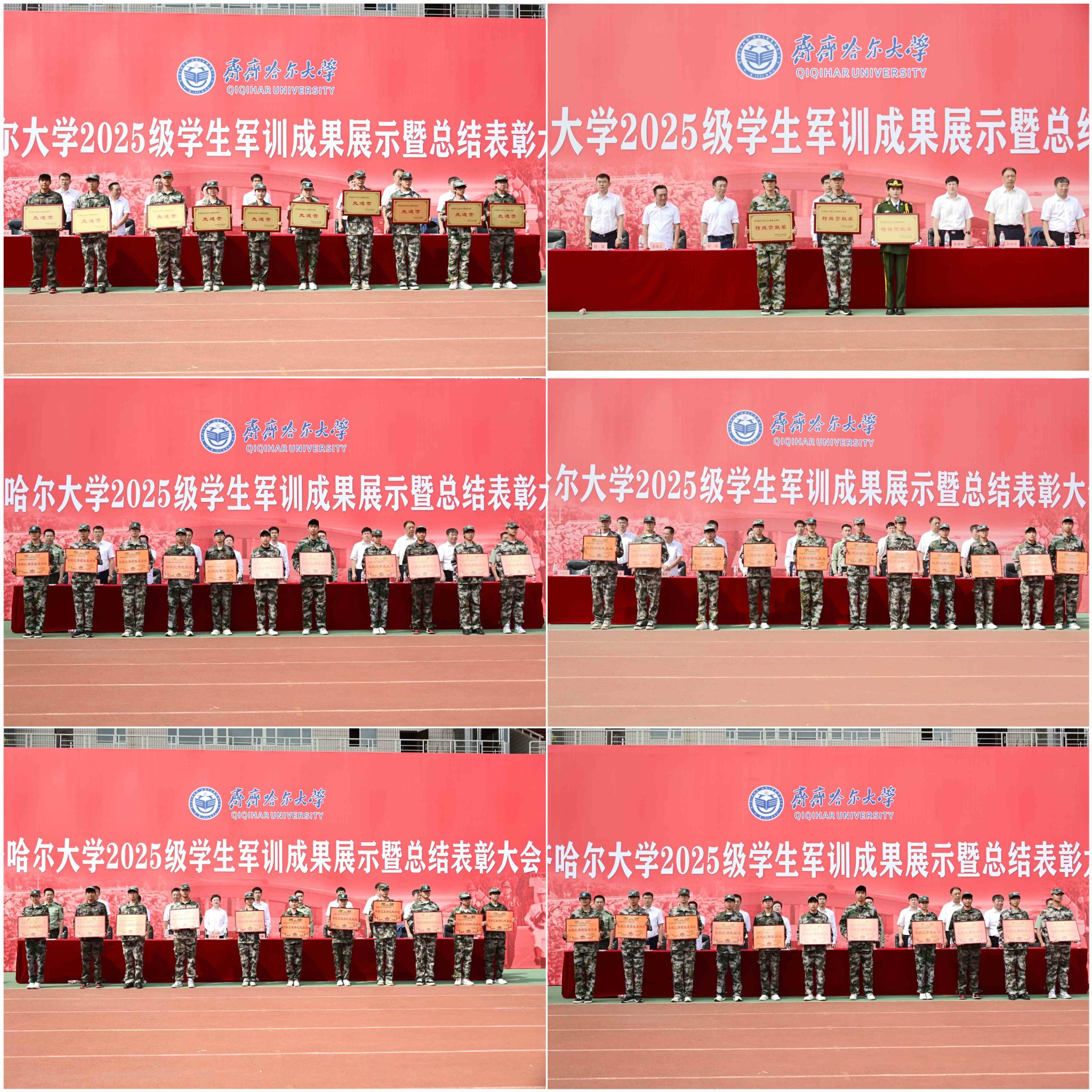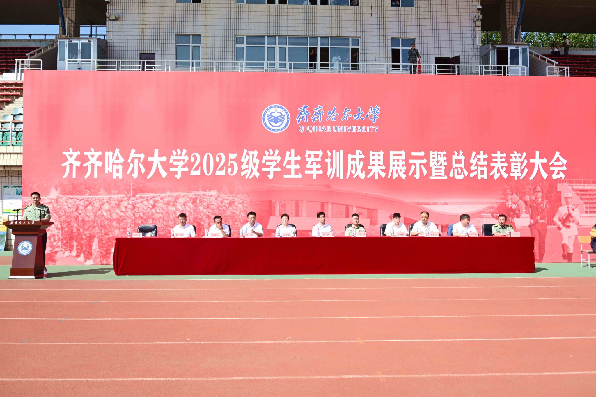 9月14日,学校2025级学生军训成果展示暨总结表彰大会在西区体育场举行。副校长、军训团政委徐广洲,武警齐齐哈尔支队少校副参谋长刘操出席大会,校武装部部长、军训团参谋长于佳宾主持大会。