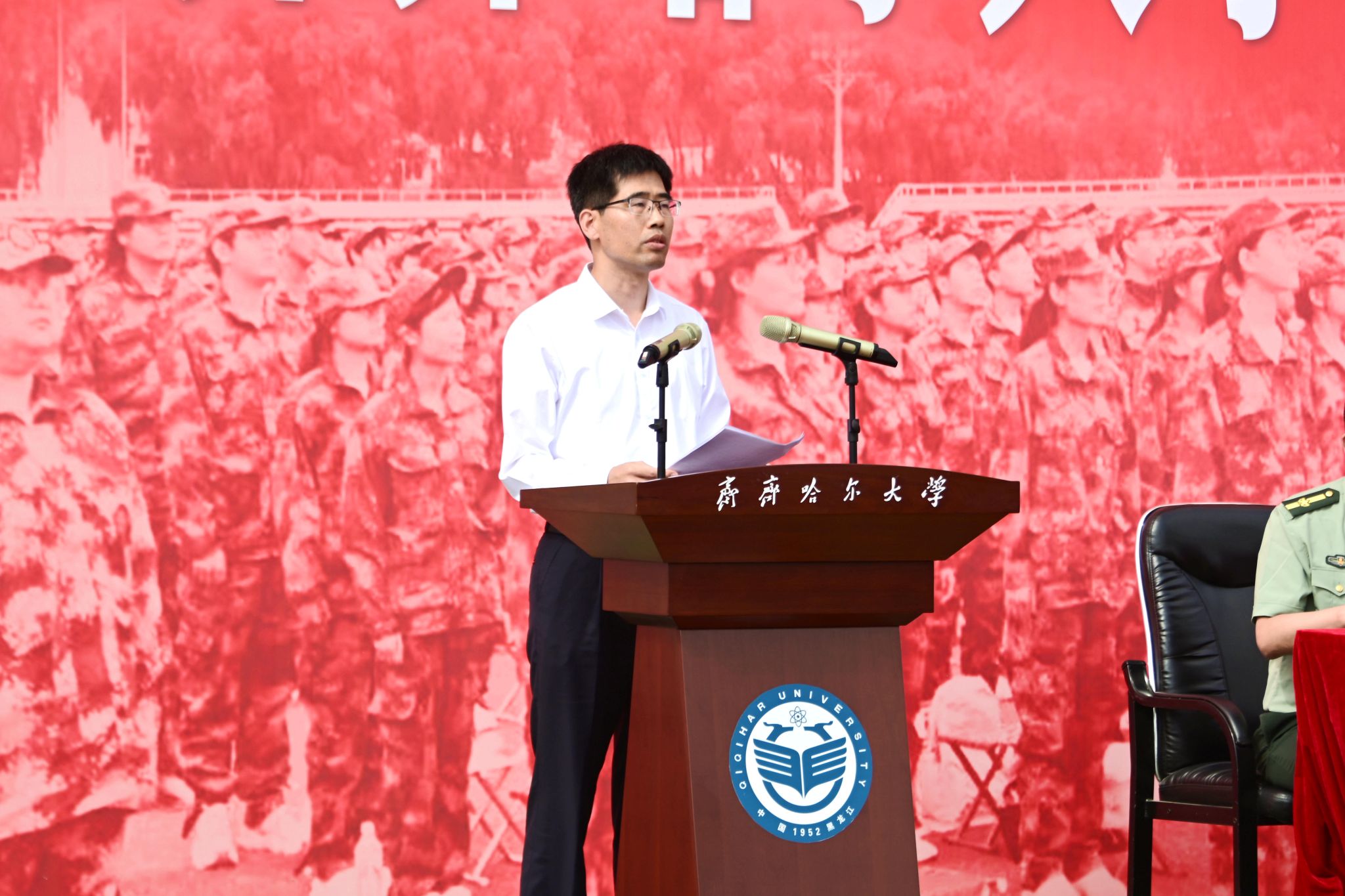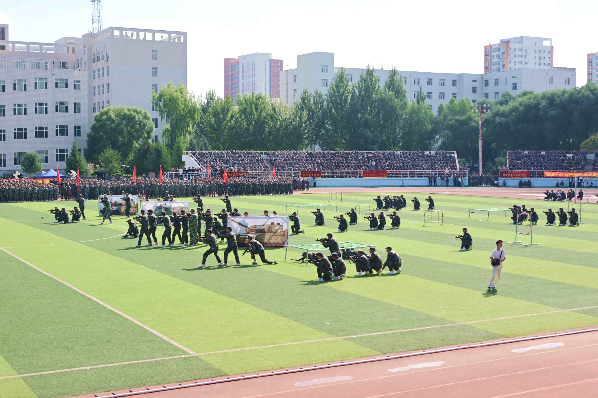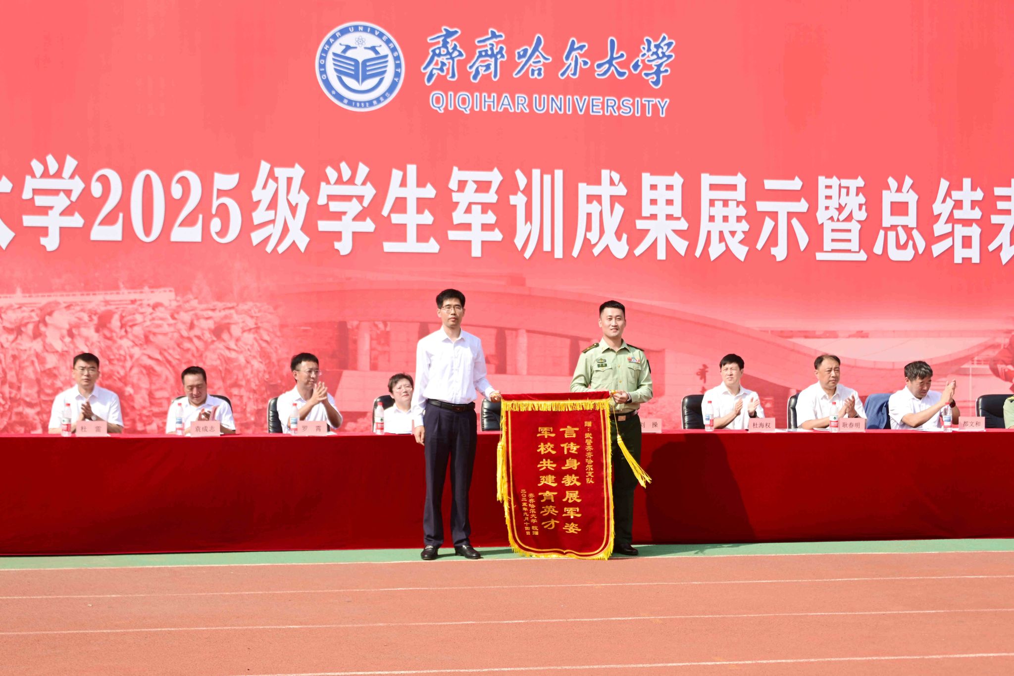 9月14日,学校2025级学生军训成果展示暨总结表彰大会在西区体育场举行。副校长、军训团政委徐广洲,武警齐齐哈尔支队少校副参谋长刘操出席大会,校武装部部长、军训团参谋长于佳宾主持大会。