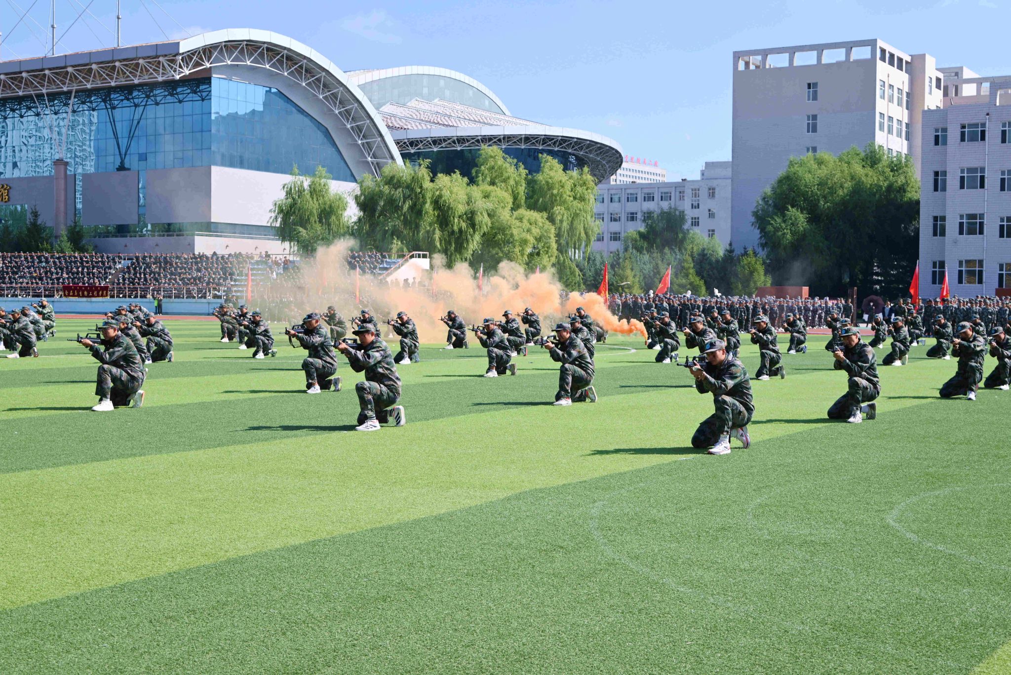 战术综合演练将整个大会推向高潮。同学们以娴熟的战术动作和精准的协同配合,模拟战场环境,生动演绎了进攻、防御、掩护与救援等实战课目,将爱国情怀具象为可感可知的责任与使命,极大地增强了集体向心力和凝聚力。