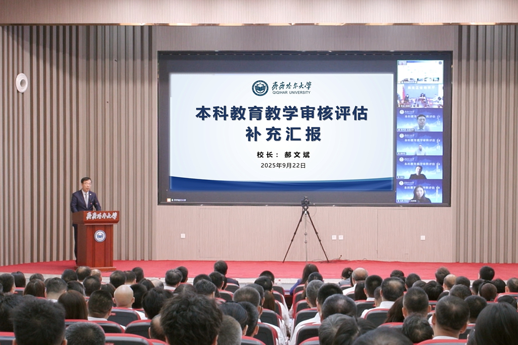 郝文斌从办学基本情况、本科教育教学改革及成效、自评报告与状态数据差异问题说明三个方面作自评补充汇报。他指出,学校立足龙江现代产业需求,深化本科教育教学改革,打造以“产业链、创新链、教育链、人才链、文化链”为主要内核、以“产教融合实体化、技术创新场景化、人才培养实战化、服务贡献精准化、文化赋能可视化”为主要内容、以“乡村振兴+创意设计”双轮驱动的“五链五化”国内一流应用型人才培养体系。他表示,学校将以此次本科教育教学审核评估为契机,勇担教育强国时代使命,为建设国内一流应用型综合性大学而不懈奋斗,为服务国家重大战略和区域经济高质量发展贡献齐大力量!