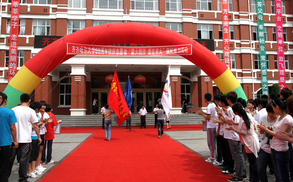 “大爱 大道 大学”,艰苦奋斗六十载;“创业 创新 创优”,科学发展谱新篇。彩旗飘扬,倒计时间。校庆各项筹备工作已经进入了关键的攻坚阶段。“建校60周年校庆志愿者‘薪火相传·爱在齐大’旗帜接力活动”的成功举行,进一步激发了全校师生为即将到来60年庆典作最后冲刺的信心和决心,展示了全体齐大人心手相连、奉献齐大、建功齐大的壮志情怀。