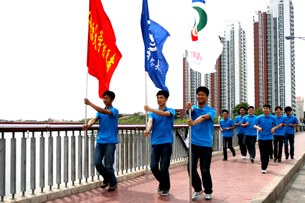 高举旗帜,我心飞扬。12:30分,校长助理、党办校办主任尹鸥举枪发令。校庆联络员和志愿者们手持旗帜从西二区出发,环绕美丽的齐大校园和劳动湖畔进行旗帜接力,历时1小时30分,行程6公里,最终到达中区广场。他们用实际行动表达了全体志愿者献力于母校60周年华诞的激动心情和爱心奉献、历练自我的信心和决心。