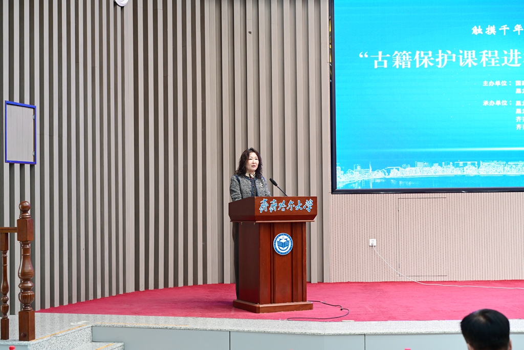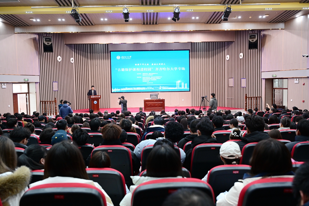黑水琳琅映鹤城,寒域遗珠绽芳华。10月29日,全省公共图书馆领导及我校师生代表400余人齐聚日新大厦,共同参与黑龙江省“触摸千年文脉,赓续文明薪火——古籍保护课程进校园”齐齐哈尔大学专场活动。活动由国家图书馆(国家古籍保护中心)、黑龙江省文化和旅游厅主办,黑龙江省图书馆(黑龙江省古籍保护中心)、黑龙江省高等学校图书情报工作委员会、齐齐哈尔市文化广电和旅游局、齐齐哈尔大学承办。