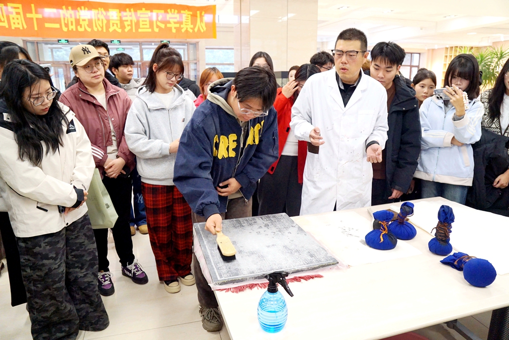 讲座后,举行了“黑水琳琅寒域遗珠——黑龙江省珍贵古籍文献特展”“古籍修复技艺展示”“古籍拓印非遗技艺展示”等活动,让师生近距离接触古籍,感受古籍的魅力。