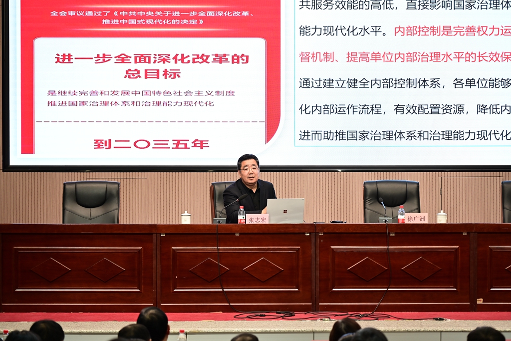 张志宏围绕高校内控建设的政策要求、实施重点与典型案例,剖析了内控建设在规范学校管理、防范运行风险、提升资源效益等方面的关键作用,为我校进一步完善内控体系提供了专业指引。他结合自身丰富的理论研究与实践经验,围绕高等学校内部控制建设的核心要点,从政策背景、建设意义、实施路径等方面进行了深入讲解,对我校进一步规范管理流程、防范风险、提高资源使用效益具有重要意义。