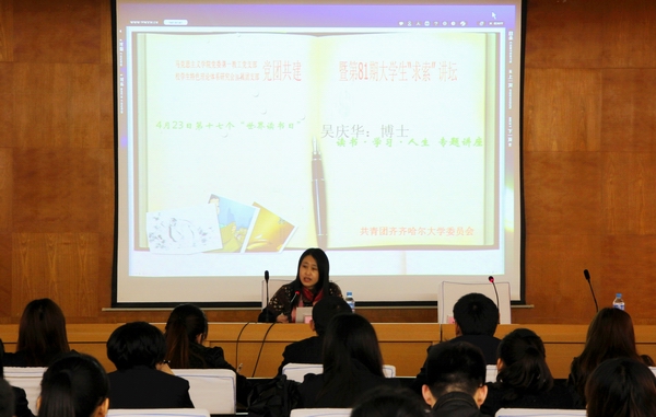 2012年4月23日是第17个“世界读书日”。为进一步激发全校师生读书的热情,浓厚校园读书氛围,推动学习型党组织和校园文化建设,倡导“让阅读成为习惯,让思考伴随人生”风尚,由校党委宣传部、学工部、校团委、图书馆共同举办的以“兴读书之风,创书香校园”为主题的“‘世界读书日’暨齐齐哈尔大学‘读书宣传周’活动”全面启动,校园内再次掀起读书热潮。