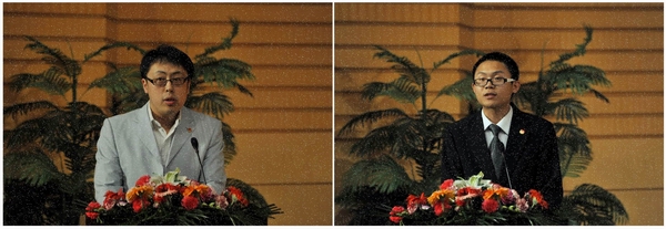 黑龙江省优秀团干部、校“十佳”优秀团干部代表、通信与电子工程学院团委书记迟生茂老师和学校“党建带团建”“党团共建”暨共青团组织创先争优活动“十佳、百先、千优”先进集体代表、校学生会直属团支部书记、学生会主席、食品与生物工程学院食品科学与工程专业09级学生肖振天同学分别代表获奖师生代表发言。