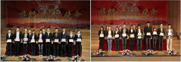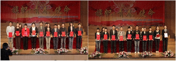 与会领导为2011年度我校获市级以上团组织荣誉的优秀专职团干部和团组织创先争优活动“十佳、百先、千优”优秀专职团干部、先进团支部代表、优秀团员代表、优秀团干部代表颁了奖。