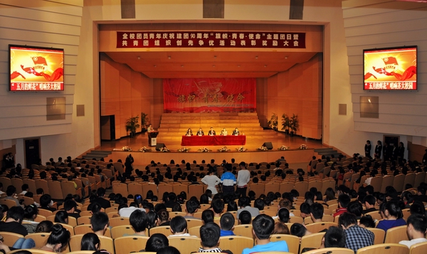 5月3日下午,我校音乐厅内掌声阵阵、诗声朗朗。全校团员青年庆祝建团90周年“旗帜·青春·使命”主题团日暨团组织创先争优活动表彰奖励大会在音乐厅隆重举行。
