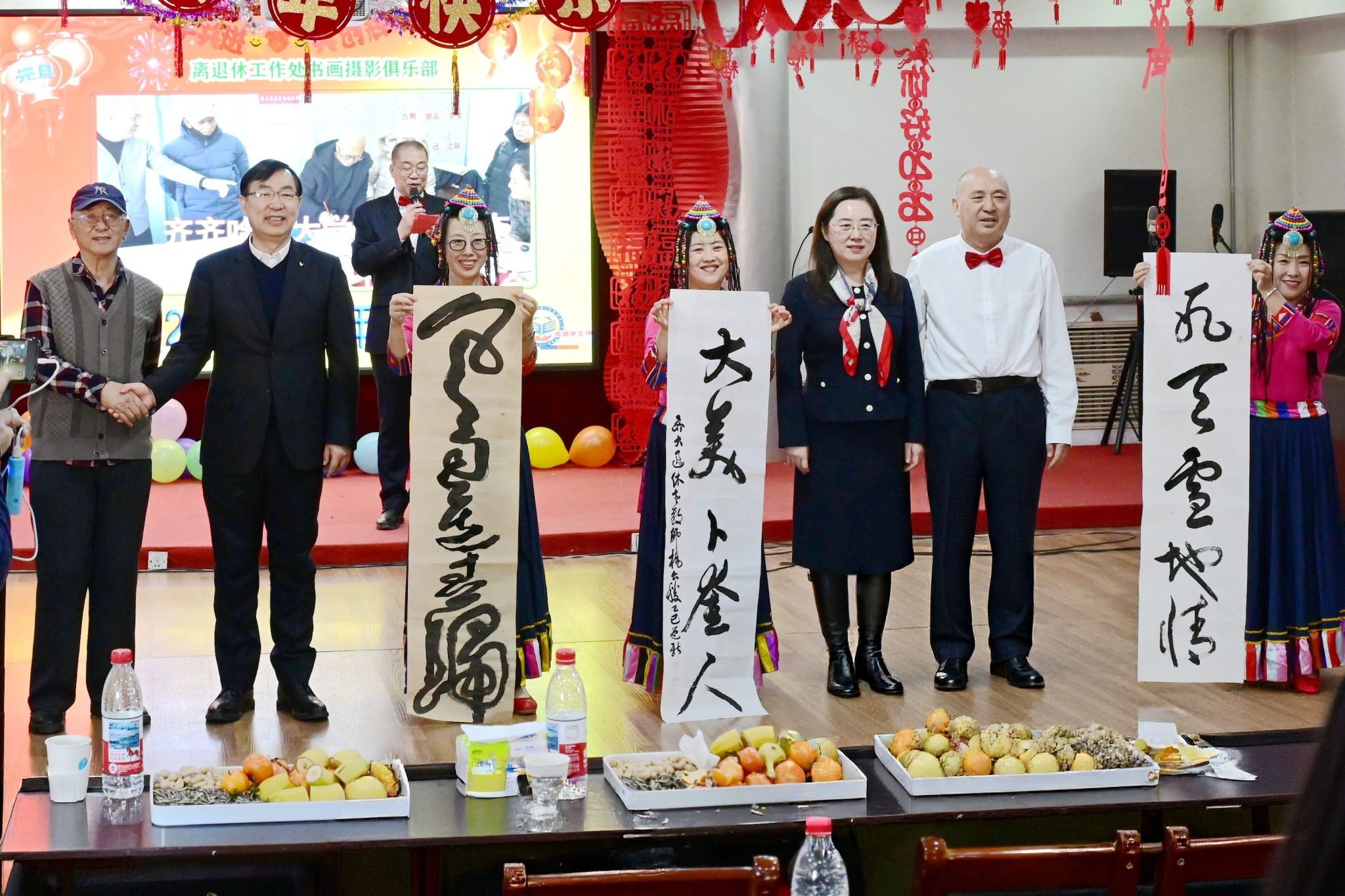 12月29日上午,学校在培训中心五楼会议室举办离退休教职工“桑榆共舞银发志·桃李同吟赤子心”喜迎2026新年联欢会暨俱乐部汇报演出。学校领导班子成员以及学校相关职能部门负责人出席活动,与离退休教职工们欢聚一堂,共绘未来愿景,共迎美好新年。