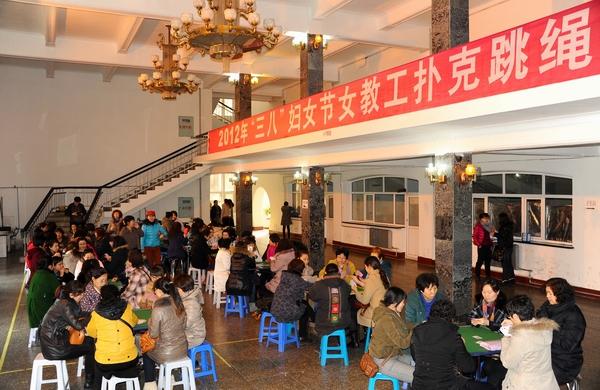 联谊活动以游艺为主,设置了扑克比赛、跳绳比赛等趣味健身项目,开放了多功能厅、台球厅、乒乓球室,吸引了全校近300名女教工参加。在活动现场,女教工们一改平日严肃紧张的工作状态,怀着喜悦的心情参加各个游艺项目,文化宫里充满了欢乐的节日气氛,不时传来阵阵笑声。