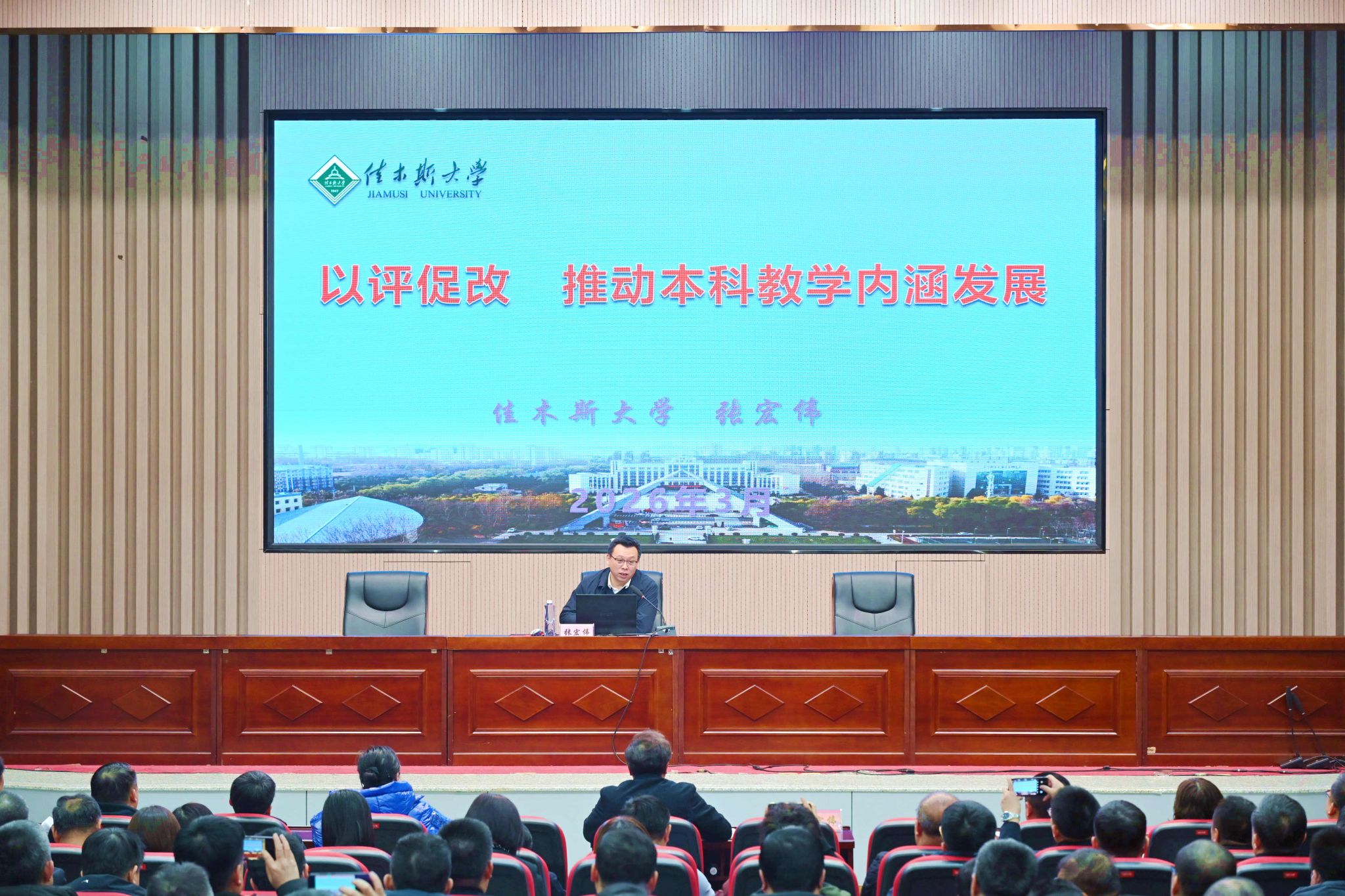 会议邀请本科教育教学审核评估专家佳木斯大学发展规划与高教研究中心主任张宏伟教授为我校本科教育教学审核评估整改工作作培训。张宏伟以《以评促改推动本科教学内涵发展》为题,从充分认识整改工作的重大意义、准确把握整改工作的核心原则、系统把握整改工作的实施路径、分层分类抓好落实、警惕常见误区、前瞻思考-将整改与“十五五”规划有机衔接等六个方面,对怎样扎实做好本科教育教学审核评估整改工作任务落实做了详尽指导。培训内容立足实操,厘清了评估整改的“最后一公里”,有效打通了从宏观政策理解到微观操作落地的障碍,具有重要的借鉴意义和推动作用。
