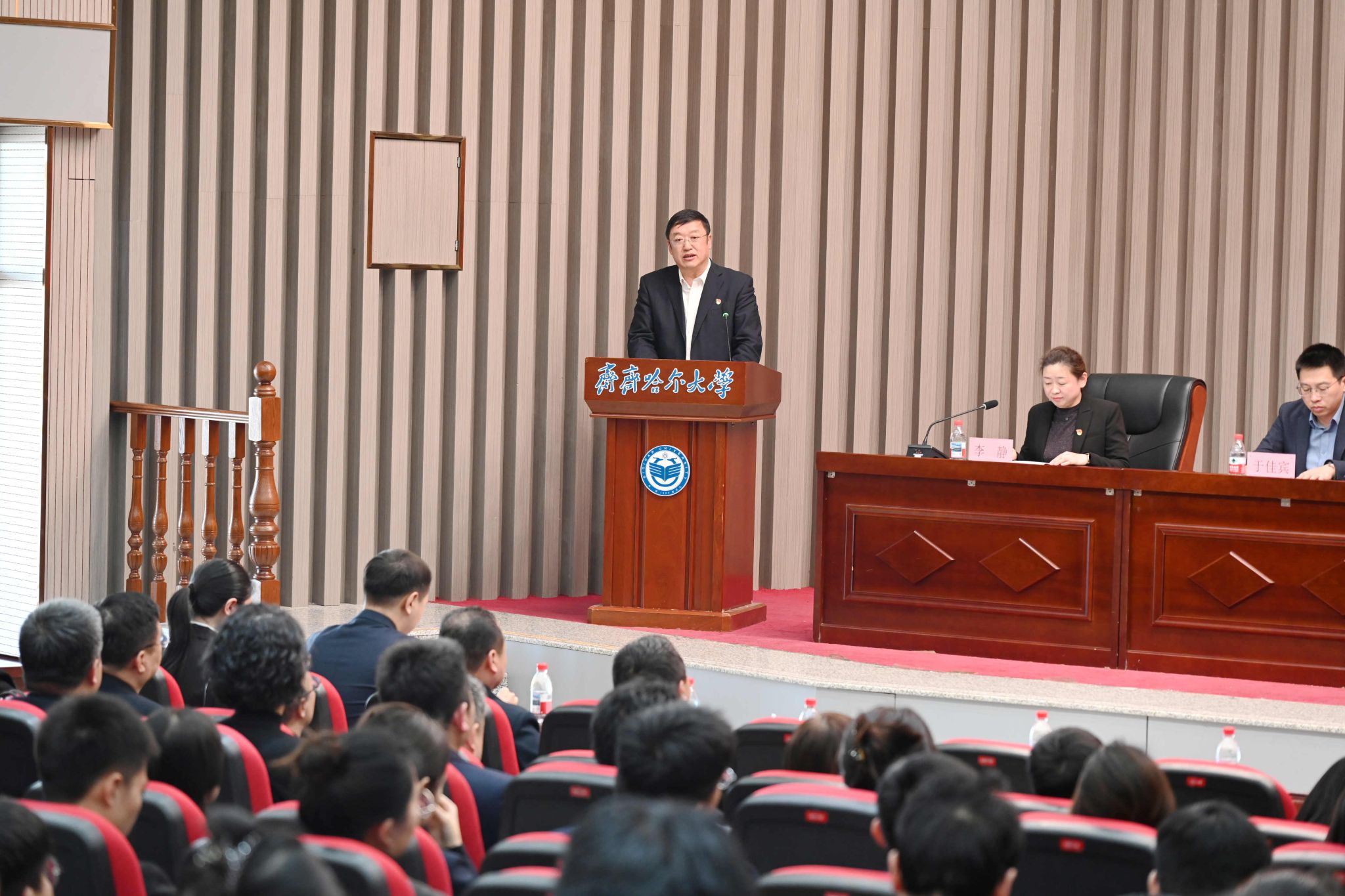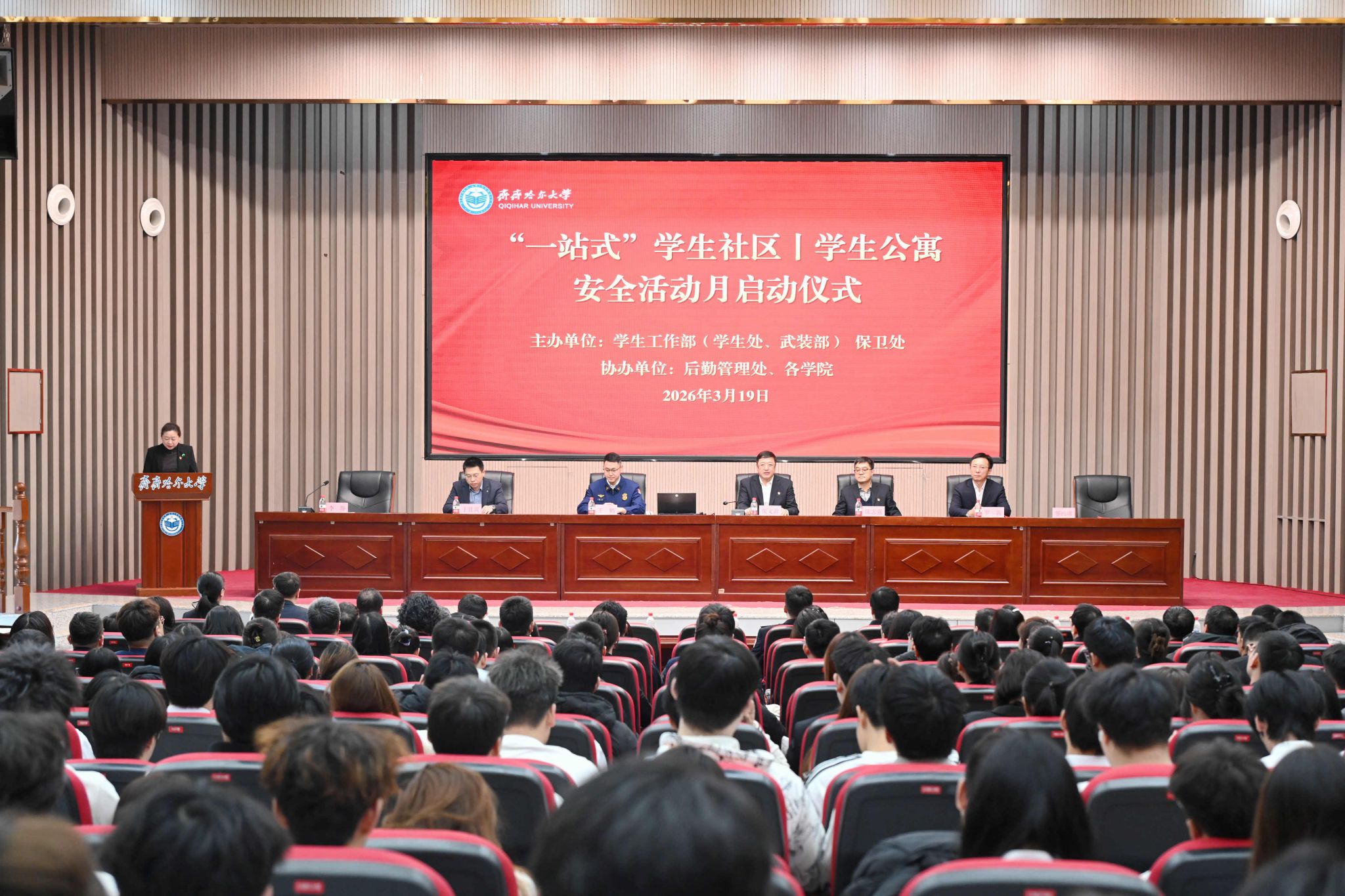 启动仪式在庄严的国歌中正式开始。学生工作部(学生处、武装部)部(处)长罗霄宣读了《“一站式”学生社区丨齐齐哈尔大学2026年学生公寓安全活动月实施方案》,明确活动目标、内容与安排。