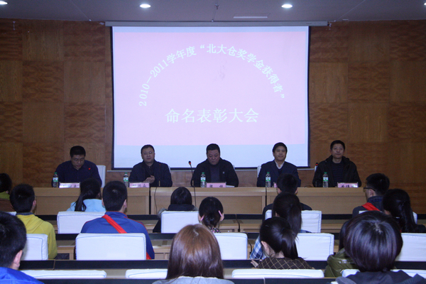 3月21日,我校在西主7楼学术报告厅隆重召开“2010-2011学年度北大仓奖学金获得者命名表彰大会”,对2010-2011学年度北大仓奖学金获奖学生进行命名表彰。常务副校长郑喜群出席会议并讲话;北大仓集团有限公司副总经理梁振、团市委副书记张兴永、校学生工作部(处)部(处)长黄伟中、副部(处)长张树启及北大仓奖学金获奖者、师生代表参加大会。