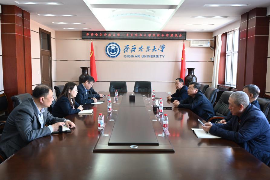 为用心用情做实做优离退休教职工精准服务保障,深化校际联动协作,推动新时代学校离退休工作高质量发展,4月13日上午,我校与齐齐哈尔开放大学校校合作座谈会在中主行政办公楼504会议室召开。齐齐哈尔开放大学党总支书记权太旭、校长朱大虎,齐齐哈尔老年大学顾问姜文孝、艺术团副团长郭玉春;我校党委书记丁宏、党委副书记张文治,学校办公室主任耿春明、离退休工作处处长赵振华出席本次座谈。