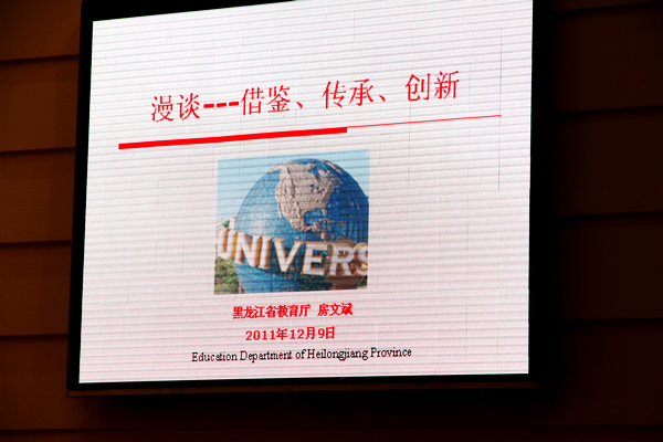 2011年12月9日下午,省教育厅副巡视员、博士生导师房文斌教授应邀在音乐厅为我校和齐齐哈尔医学院的师生作了题为《漫谈——借鉴、传承、创新》的学术报告。