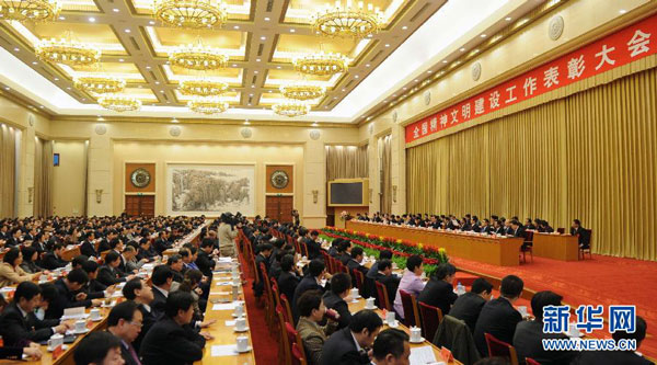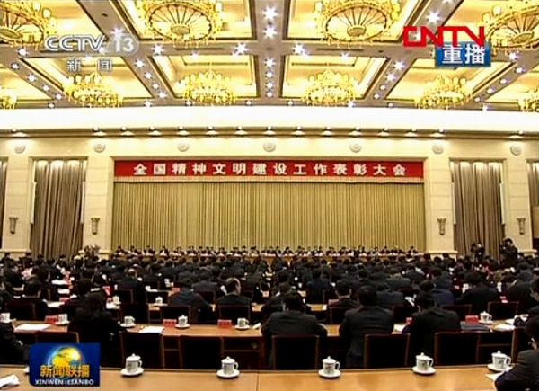 文明花开,再传捷报。全国精神文明建设工作表彰大会于2011年12月20日上午在北京隆重举行。中共中央政治局常委、中央文明委主任李长春出席并讲话。中共中央政治局委员、书记处书记、中宣部部长、中央文明委副主任刘云山主持会议。中共中央政治局委员、国务委员、中央文明委副主任刘延东宣读了表彰决定,授予27个全国文明城市(区)、899个全国文明村镇、1794个全国文明单位,继续保留23个城市(区)的全国文明城市(区)荣誉称号。我校被中央文明委授予全国文明单位荣誉称号,这是我校继2009年获得全国精神文明建设工作先进单位后取得的又一殊荣。