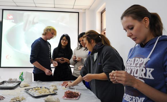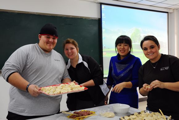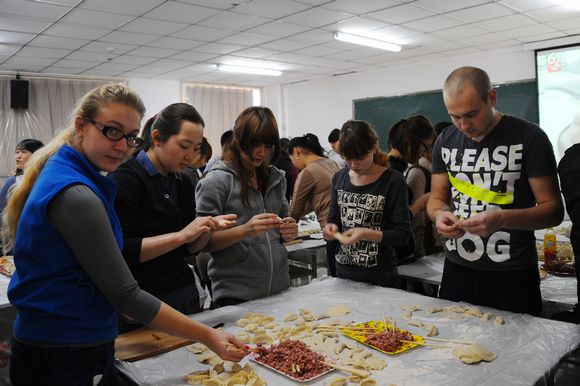 经过一番学习,留学生们便有模有样的开始操作。包饺子的过程中,大家相互鼓励与合作,欢声、笑语汇成一片,忙得不亦乐乎。