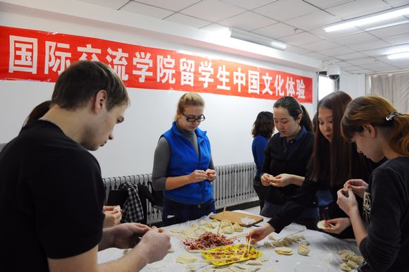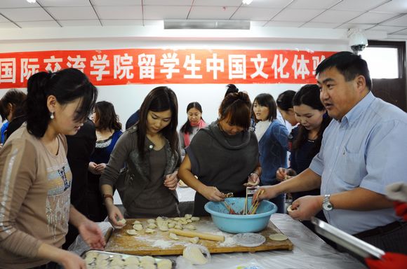 为使广大留学生进一步了解我国的传统文化,丰富大家的课外生活,12月23日上午,国际交流学院组织来自蒙古国、韩国、美国等多个国家的留学生开展了包饺子活动。蒙古国东方大学校长奥都满德呼与国际交流学院副院长谢晓丰、翟英华带领留学生一起,在德润大厦食堂学习包饺子手艺,亲身体验中国传统文化。