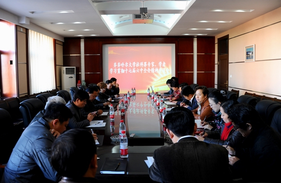 会上,李海红书记传达了中共黑龙江省委十届十八次全会精神和省委书记吉炳轩代表省委常委会所作的重要讲话,希望各位专家学者借中央十七届六中全会和我省十届十八次全会的东风,搞好我校的文化建设工作。
