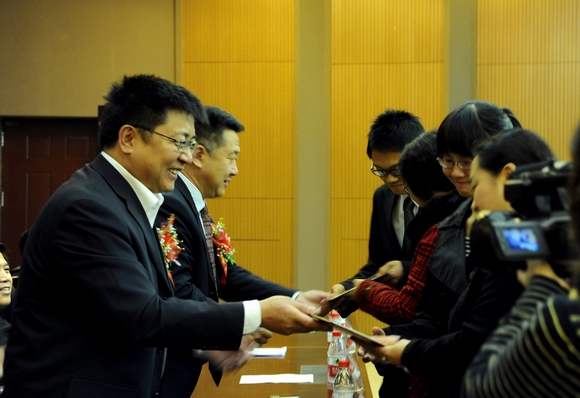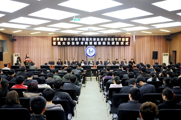 青春选择挑战,创新引领未来。在全党全国深入学习贯彻党的十七届六中全会精神之际,在我校全力推进高水平大学建设、喜迎母校六十华诞之时,为进一步培养我校学生的科研意识、创新精神和实践能力,大力促进我校课外学术科技活动的蓬勃发展,为我校高水平大学建设做贡献,向母校六十华诞献礼,以“青春·挑战·未来”为主题的我校第十四届大学生学术科技节开幕式暨学校首批大学生学术科技创新团队授旗仪式于11月10日下午,在我校德润大厦四楼会议室隆重举行。