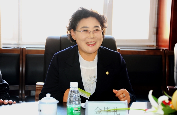 11月11日下午,以韩国高阳市议会议长金毕礼为团长的高阳市议会代表团一行五人在市人大常委会副主任王光、孙杰等陪同下访问我校。校长马立群在学校504会议室会见了金毕礼一行,并进行了友好工作会谈。副校长郑喜群、外事处处长胥军、副处长周丽会见时在座。