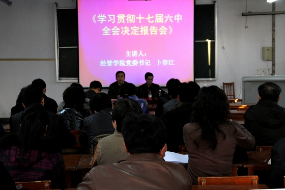 为深入学习贯彻落实党的十七届六中全会精神,按照校党委《关于学习贯彻党的十七届六中全会精神的通知》的要求,我校宣讲团开始对各基层单位开展党的十七届六中全会主要精神的宣讲辅导。