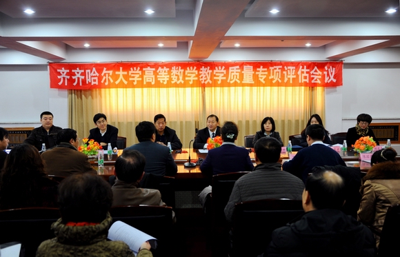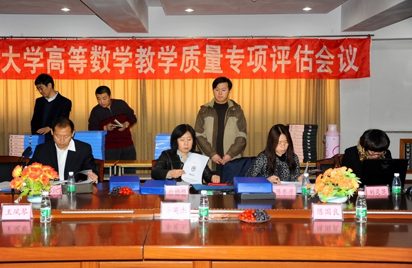我校党委副书记王凤琴、副校长郑喜群出席评估会,教务处长李英杰、实践教学设备管理处张德庆、高教研究中心陈国良及理学院领导和高等数学课程教师代表参加了评估会。