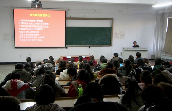 为促进全校广大师生深刻领会党的十七届六中全会精神,落实黑龙江省提出的文化建设“八大工程”,更好的发挥我校在区域文化建设中传承引领和创新作用,按照学校党委关于学习贯彻党的十七届六中全会精神的通知要求,学校宣讲团深入基层,结合我校实际,宣传党的十七届六中全会精神,在校园内掀起了学习贯彻十七届六中全会精神的热潮。