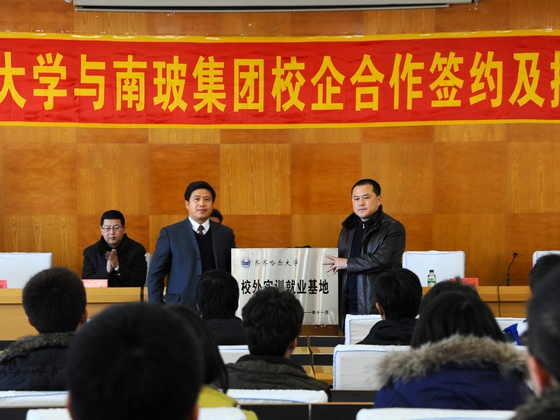 仪式上,副校长郑喜群与南玻集团生产总监黄家鸿共同签署了有关合作协议,并互授“齐齐哈尔大学校外实训就业基地”和“南玻集团材料专业人才培训基地”牌匾。
