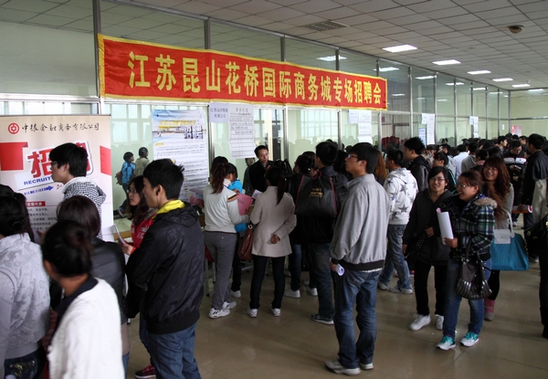 为了给毕业生提供更多的就业岗位和市场,同时为企业提供各方面的专业人才,2011年10月15日,昆山花桥国际商务城17家企业组团来我校举办专场招聘会。我校学生指导中心主任杨国志、副主任吴刚与17家企业负责人举行了就业恳谈会并到招聘现场考察。