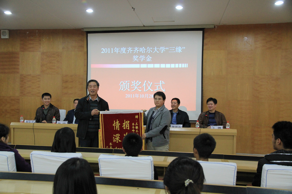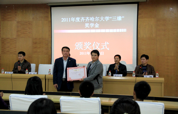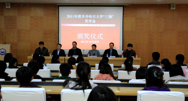 2011年10月28日下午,2011年度齐齐哈尔大学“三缘”奖学金颁奖仪式在西主七楼学术报告厅隆重举行。