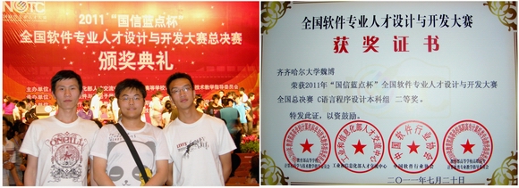 7月14-16日,第二届全国软件专业人才设计与开发大赛总决赛在北京大学计算中心举行,北京航空航天大学、浙江大学、华中科技大学、吉林大学、中山大学、齐齐哈尔大学、武汉软件工程职业学院等全国352所本科、高职高专院校的900余名选手代表参加了总决赛。我校计算机与控制工程学院李长荣、金涛老师指导的魏博荣、程水强、赵鹏等3名学生参加了C语言程序设计本科组决赛并取得优异成绩。软件工程08级学生魏博荣获了二等奖,软件工程09级学生程水强和软件工程10级学生赵鹏均荣获三等奖,充分展现了我校软件专业的实力,为我校争得了荣誉。