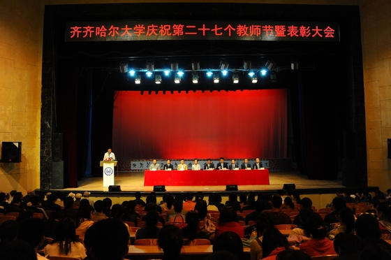 在我国第27个教师节及中华民族传统佳节中秋节到来之际,9月9日下午14时30分,我校在中区文化宫召开大会,隆重庆祝教师节并对优秀教师和优秀教育工作者进行表彰。