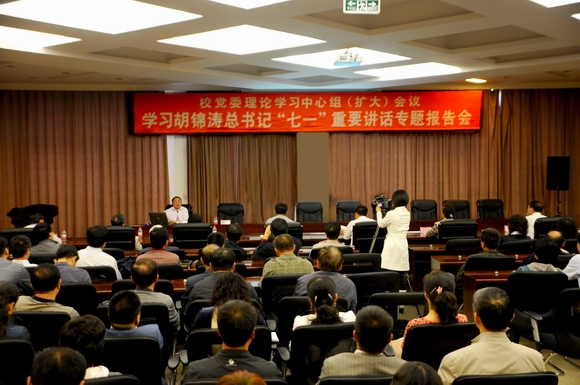 9月14日下午,我校在德润大厦四楼会议室召开校党委理论学校中心组(扩大)会议,邀请上海青年管理干部学院原党委副书记、副院长、我校优秀校友田保传教授作学习胡锦涛总书记“七一”重要讲话专题报告。会议由校党委书记李海红同志主持。校党委理论学习中心组全体成员、各基层党委(直属党支部)书记、全校副处级以上干部以及部分思想政治理论课教师参加了本次学习。