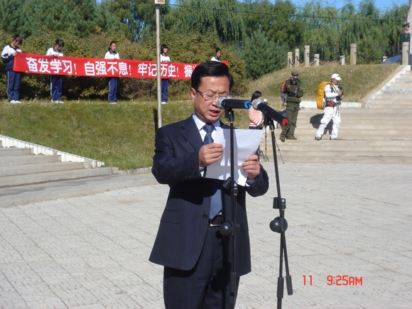 他最后说,“重走抗战路”活动让广大同学接受了一次深刻的爱国主义教育。希望同学们牢记党和人民的重托,继承先烈遗志,自觉担当起时代的重任,做理想远大、信念坚定的新一代,做品德高尚、意志顽强的新一代,做视野开阔、知识丰富的新一代,做开拓进取、艰苦创业的新一代。希望同学们更加珍惜青春美好年华,勤于学习,勇于实践,善于创新,为中华民族的伟大复兴而努力拼搏,奋勇向前!