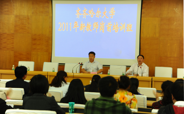 岗前培训是高校青年教师掌握高等教育教学规律,端正教育思想,较快适应岗位要求的一项基本训练和持证上岗的重要环节。对加强青年教师的教育教学技能、职业道德培养和提高教学水平更好地履行教师岗位职责具有重要意义。根据黑龙江省高校师资培训中心《关于2011年黑龙江省高等学校教师岗前培训报名的通知》(黑师师培字[2011]6号)和《齐齐哈尔大学青年教师岗位能力培养工作实施意见》文件精神,我校对2011年新教师校内岗前培训工作已于9月9日正式启动。