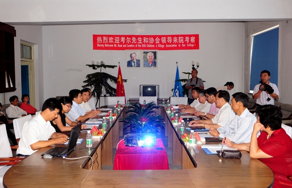 格迈纳尔职业技术学院院长张宪忠作了工作汇报。介绍了学院的发展现状和“传承格迈纳尔精神,培养高技能人才”的做法以及未来几年的工作设想。在听取工作汇报后,Kaul先生对学院的工作表示充分的肯定,并与参会领导就合作中的有关问题进行了探讨。特别是对学院加强学生实践环节,培养高技能人才的做法给予高度评价,建议形成经验材料,在全国儿童村系统会议上交流。