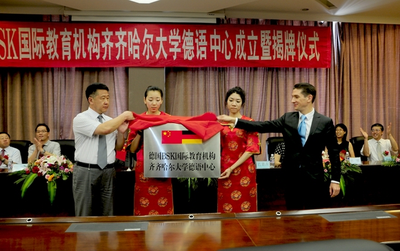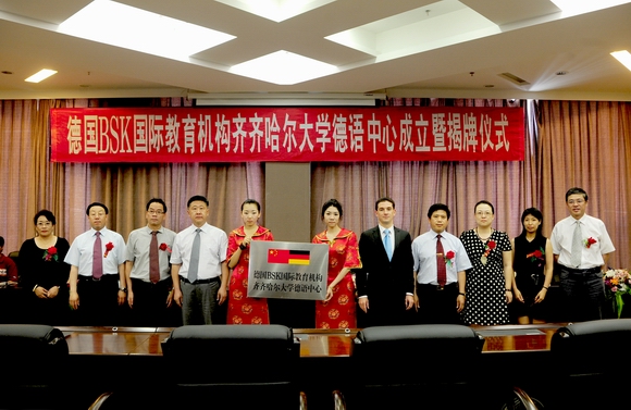 校长马立群与费费康安签署了《中国齐齐哈尔大学与德国BSK国际教育机构关于建立德语中心的协议》、《中国齐齐哈尔大学与德国BSK国际教育机构关于建立德语中心的师资委托代培协议》,并共同为“德国BSK国际教育机构--齐齐哈尔大学德语中心”揭牌。