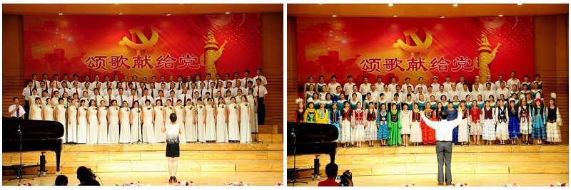 一首首豪迈铿锵的红歌合唱,一段段声情并茂的激情吟诵,让现场千余名师生仿佛穿越历史的时空,在澎湃的激情中感受着中国共产党90年走过的光辉历程。共有20支参赛队伍参加了比赛,党政机关合唱队、继续教育学院新疆培训班合唱队、音乐与舞蹈学院合唱表演队参加了合唱表演。
