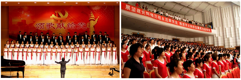 为庆祝中国共产党建党90周年,牢记革命历史,继承光荣传统,弘扬民族精神,根据省委高校工委“回顾党史、继承传统、展望未来”主题系列教育活动的要求和学校党委《纪念中国共产党成立90周年活动方案》的部署,学校党委于“七一”前夕举办了全校师生“颂歌献给党”大合唱比赛。