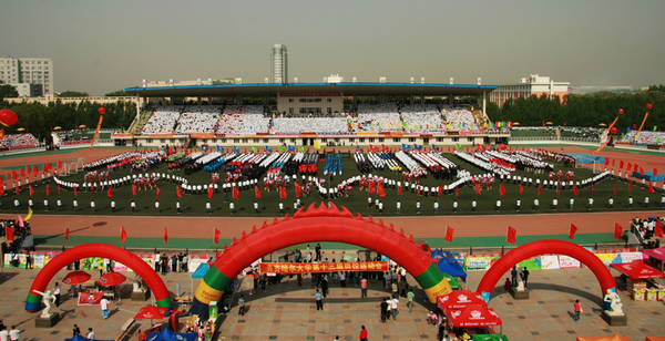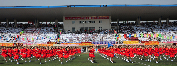 经济与管理学院、文学与历史文化学院、外国语学院、教育与传媒学院、音乐与舞蹈学院等五个学院学生还举行了气势宏大、精彩纷呈的大型团体操表演,集中展现了体育文化的魅力,表达了全校师生众志成城谋发展的共同心声。
