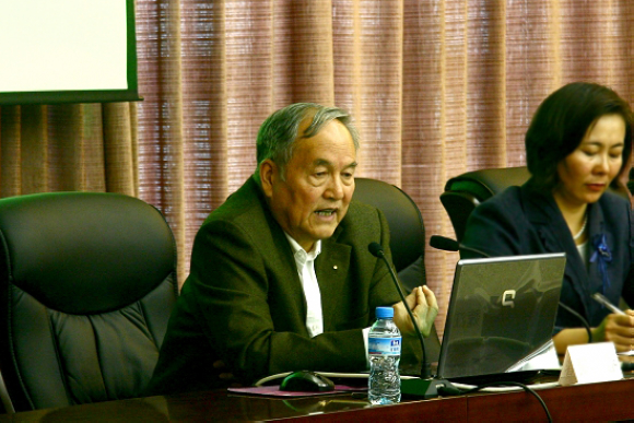一年多来,我校共举办高水平学术讲座100余场,邀请了包括中国科学院微生物研究所魏江春院士、东北大学机械研究所所长闻邦椿院士、抚顺石化总公司总工程师胡永康院士、哈尔滨工业大学杜善义院士、蔡鹤皋院士、东北林业大学野生动物资源学院名誉院长马建章院士、哈尔滨医科大学校长杨宝峰院士等国内外知名专家学者来我校进行学术讲座。其中在2009年9月8日,中国科学院微生物研究所魏江春院士应我校科技处、研究生处及生命科学与工程学院等有关单位的邀请,莅临我校考察指导科研与学科建设工作,并在国际交流中心学术报告厅以《生物多样性及系统生物学在人类可持续发展中的意义》为题为我校师生做了精彩的学术报告,受到了师生的热烈欢迎与好评。