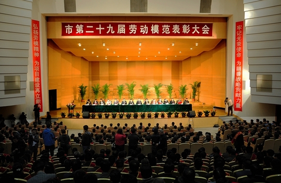 4月28日上午,在雄壮的国歌声中,齐齐哈尔市第二十九届劳动模范表彰大会在我校音乐厅隆重召开。我校党委书记李海红出席大会,校长马立群在大会主席台就坐并为获奖集体和劳模代表颁奖。全市62个先进单位,108个先进集体,12个先进班组标兵和299名市劳动模范在表彰大会上受到命名表彰。“齐齐哈尔大学”荣获“齐齐哈尔市第二十九届劳模大会先进单位”荣誉称号。我校校长马立群教授、化学与化学工程学院贾丽华教授、马克思主义学院王晓梅教授荣获“齐齐哈尔市第二十九届劳动模范”荣誉称号;食品与生物工程学院郭成宇教授荣获“五一劳动奖章”。