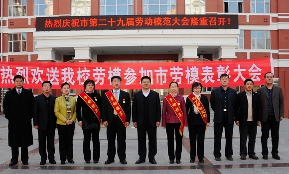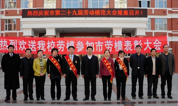 参会之前,我校在中区主楼前广场举行了欢送仪式,学校领导李海红、马立群、王凤琴、盖元臣、郑喜群、王刚、吕晓辉及有关部门和学院领导向荣获“齐齐哈尔市第二十九届劳动模范”和“五一劳动奖章获得者”表示热烈祝贺并欢送他们入场。