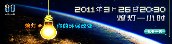 “地球一小时(Earth Hour)”是世界自然基金会(WWF)应对全球气候恶性变化所提出的一项倡议,希望个人、社区、企业和政府在每年3月最后一个星期六20:30-21:30熄灯一小时,来表明他们对应对气候变化行动的支持。2011年“地球一小时”活动的主题是“熄灯一小时+你的环保改变”,在倡导熄灯一小时的同时,还倡导在未来的一年中采取可持续的环保行动。